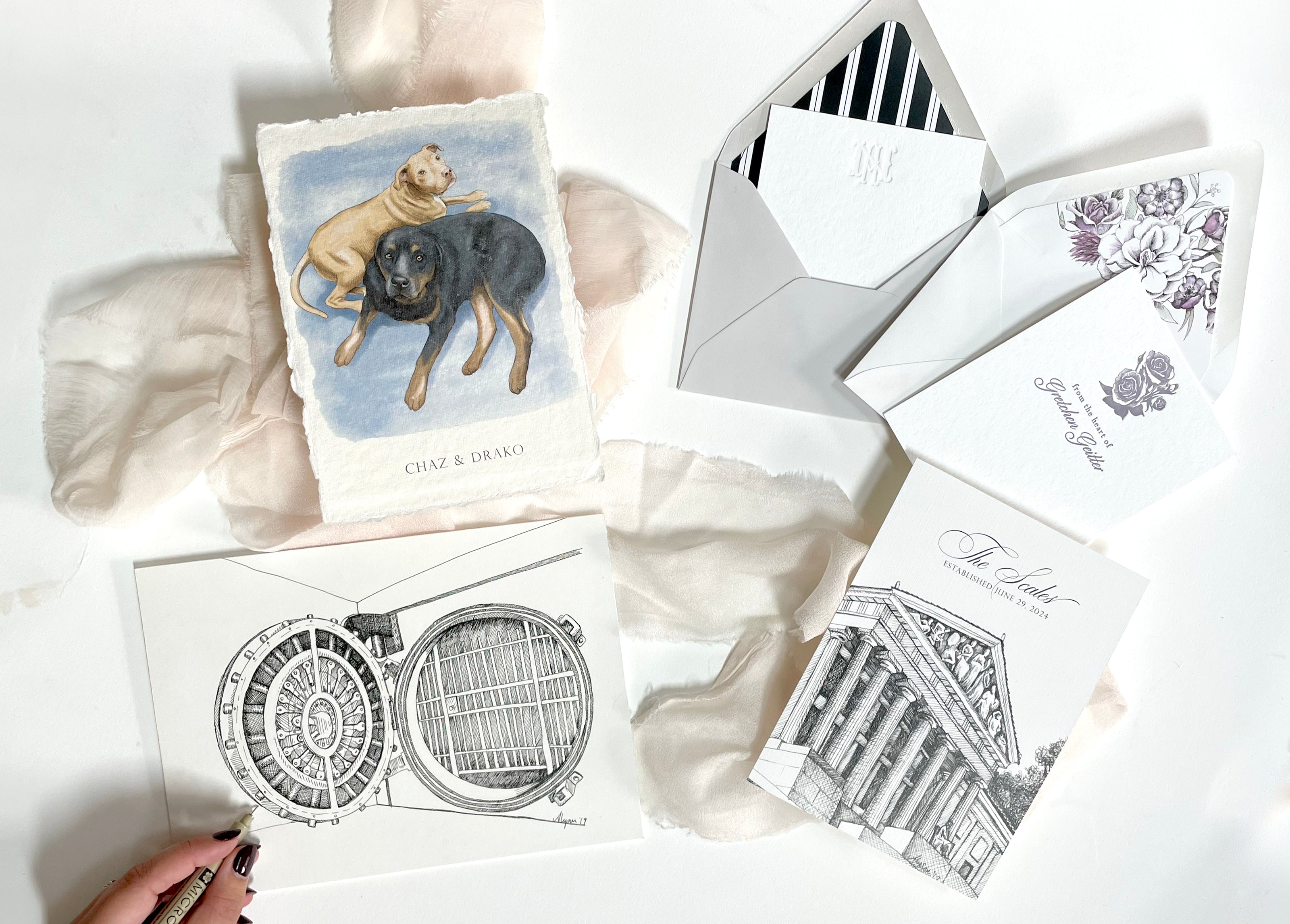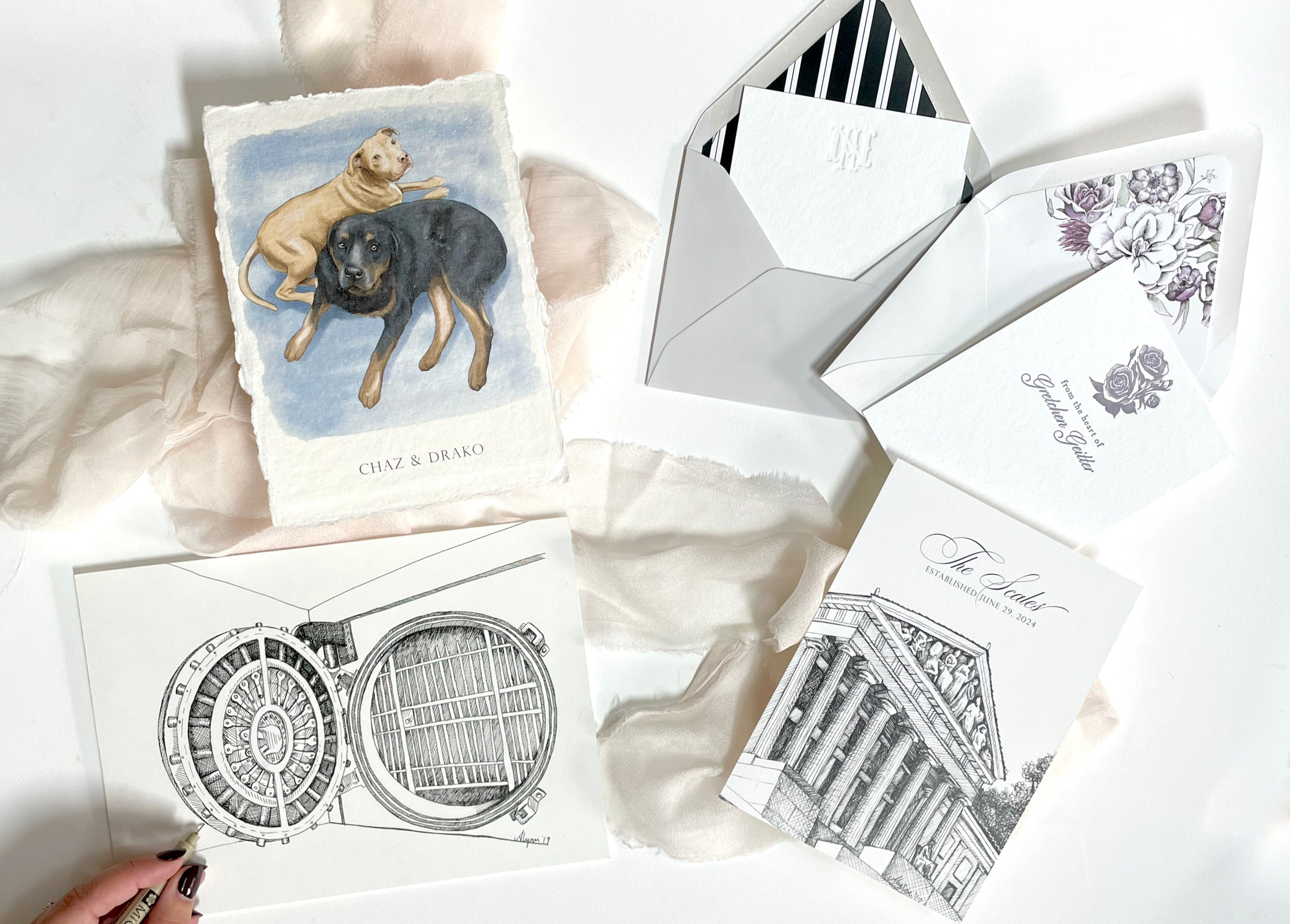 Now booking 2026 and beyond! Visit our Luxury Event Invitations page for more information, and a form to set up an appointment!
