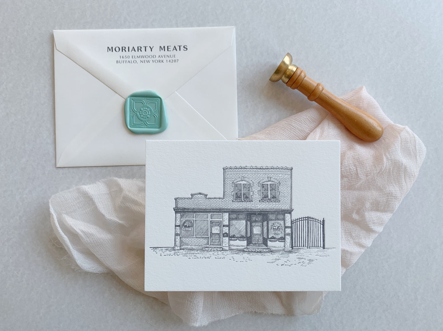 Our luxury letterpress stationery is perfect for holiday cards, thank you cards, or every day note cards. We print all of our stationery in our Buffalo Print Studio on our 100-year-old letterpresses. All prices include text or logo-based designs, or existing illustrations, and white envelopes with return address. Please see back page for custom illustration add-on. Starting at $300 for 50, inquire for a custom quote today.