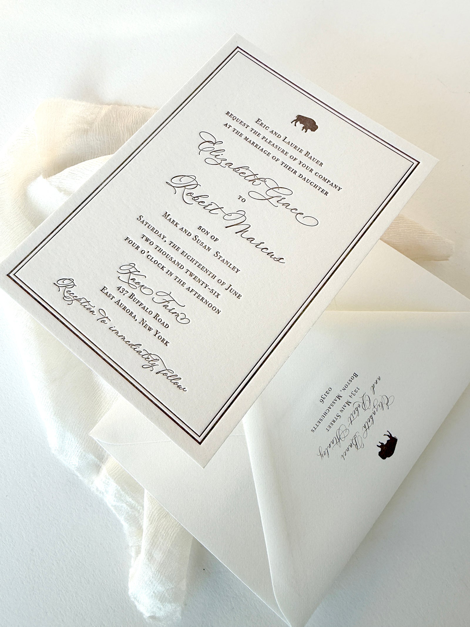 Our Semi-Custom Suites combine the beauty of traditional letterpress with an efficient, guided workflow — delivering your complete invitation suite in as little as five weeks.