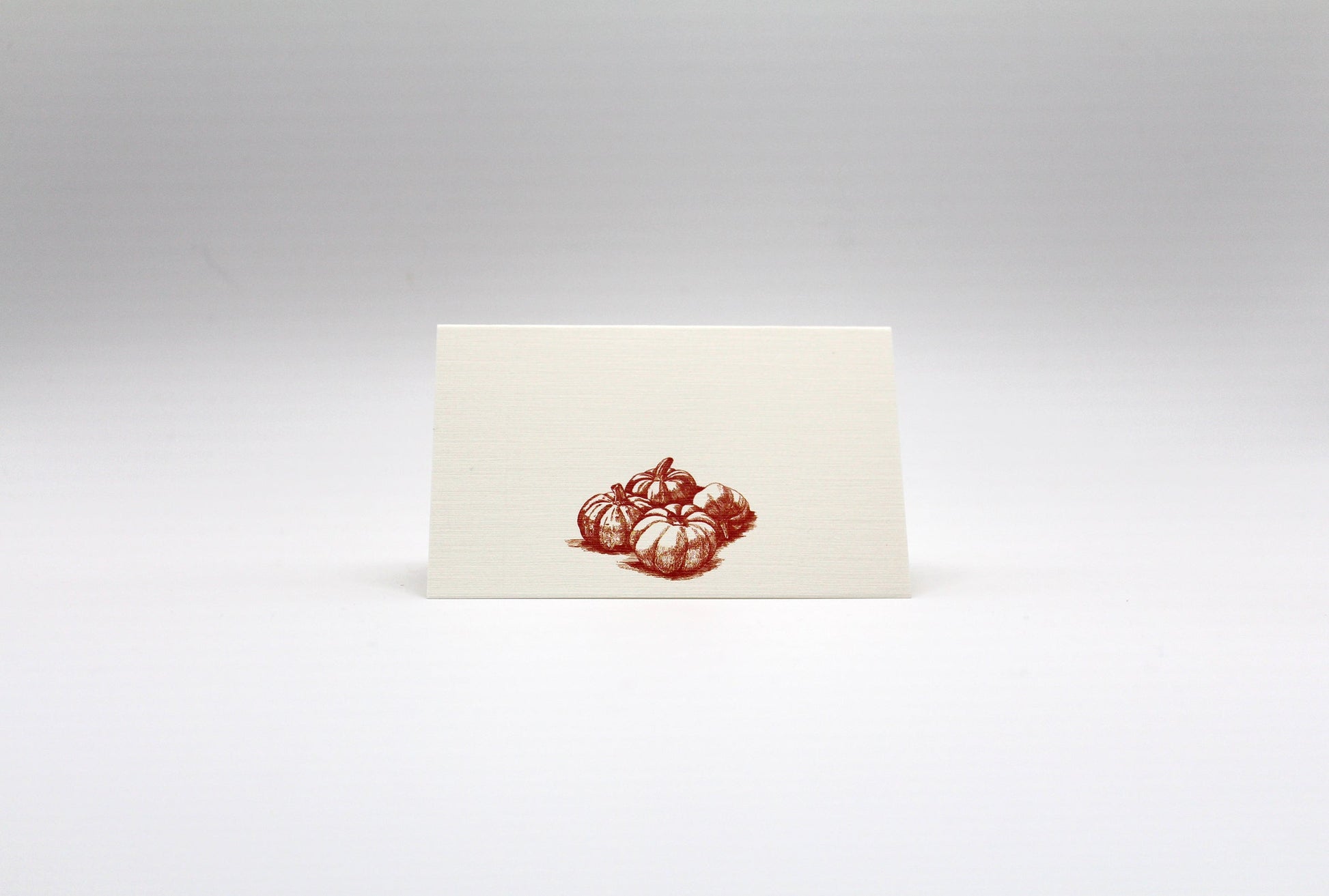 Featuring hand-illustrated pumpkins with trailing vines in rich autumn tones, these folded place cards are perfect for festive fall gatherings.